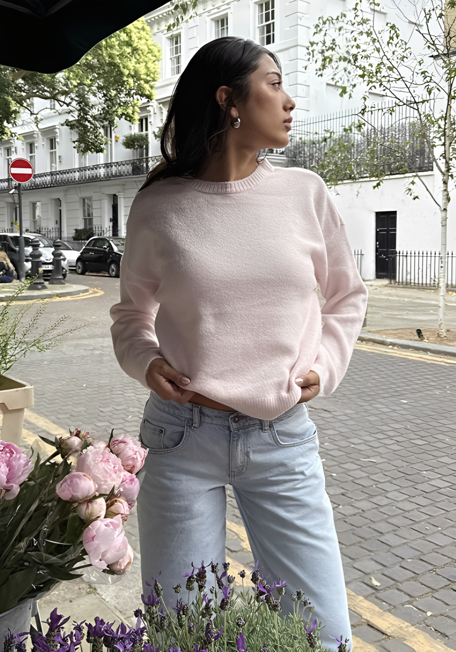 Look and feel fabulous with this knitted sweater in a gorgeous pink color. The loose, comfortable fit means that it can paired equally as stylishly with jeans, over a dress or with shorts. Perfect for fall, winter and spring.
