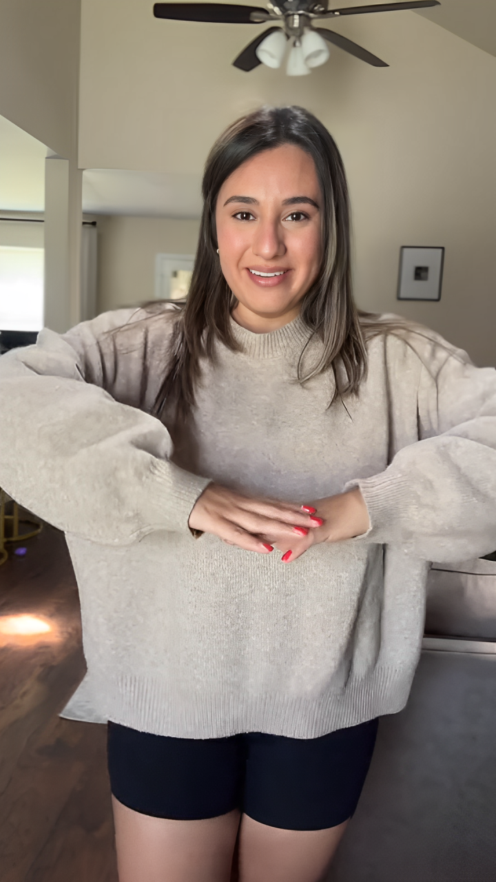 "I love this sweater! It’s really soft and looks equally as flattering with jeans and sneakers or with a skirt and heels. I’m a sucker for big sleeves and these are perfect for keeping my hands nice and warm when it gets cold. Already a go-to for wearing to the office, but also to casual brunches on the weekend."